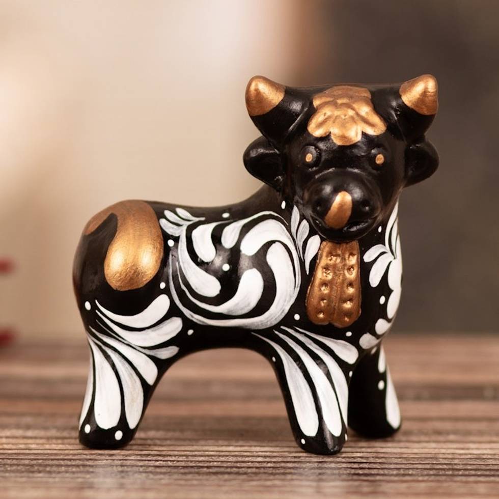 Traditional Andean Handmade Ceramic Bull Sculpture in Black 'Black Guardian of Pucar' Item ID: 2671402973