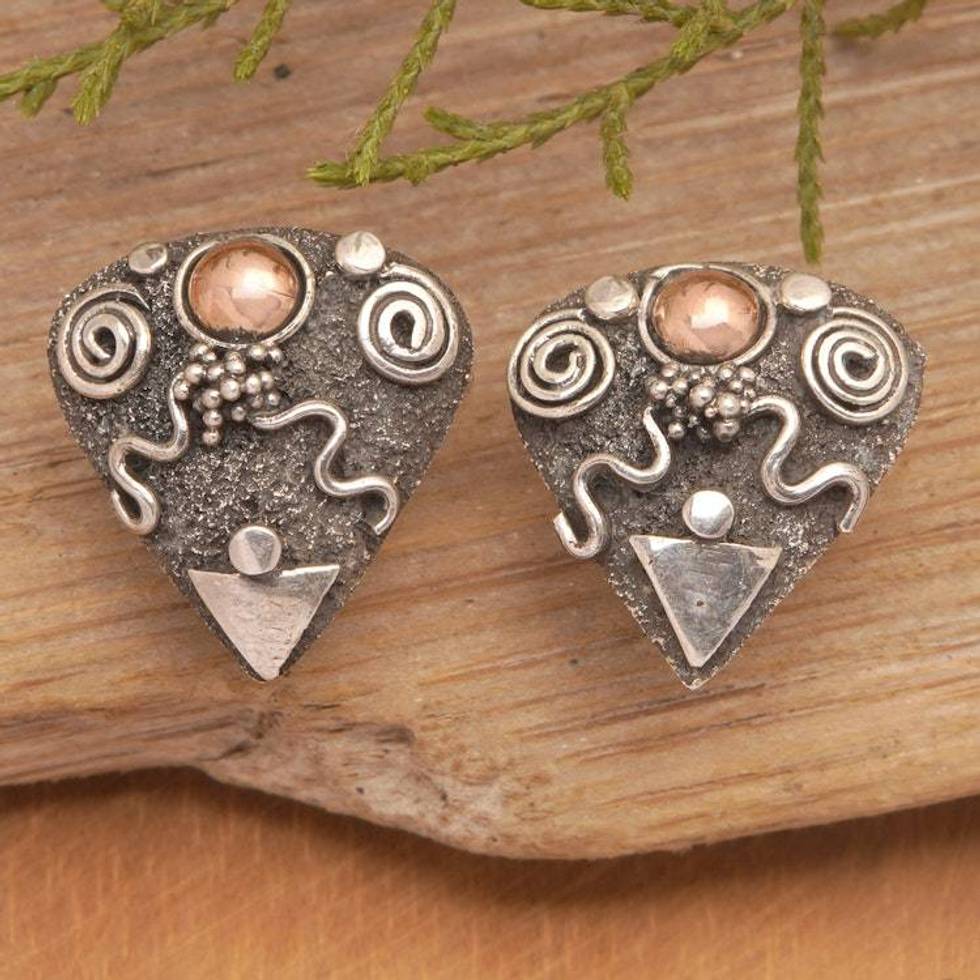 Traditional Balinese 18k Gold-Accented Button Earrings 'Spiritual Portals' Item ID: 2676659950