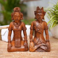 Traditional Balinese 2-Piece Suar Wood Couple Sculpture Set 'Harmonious Couple' Item ID: 2671765753