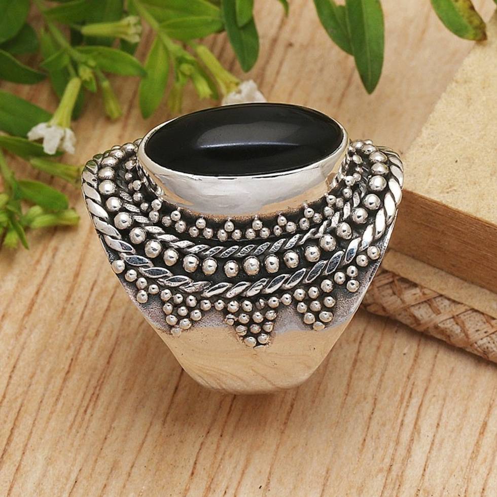 Traditional Balinese Onyx Cabochon Cocktail Ring 'Kintamani Jewel' Item ID: 2671667521