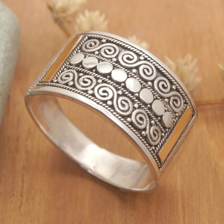 Traditional Balinese Polished 18k Gold-Accented Band Ring 'Golden Tegalalang' Item ID: 2671765013