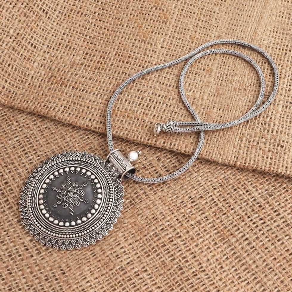Traditional Balinese Shield Sterling Silver Pendant Necklace 'Kraton Shield' Item ID: 2671737091
