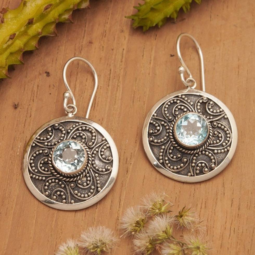 Traditional Balinese Silver Earrings with Blue Topaz 'Balinese Aura' Item ID: 2671732439