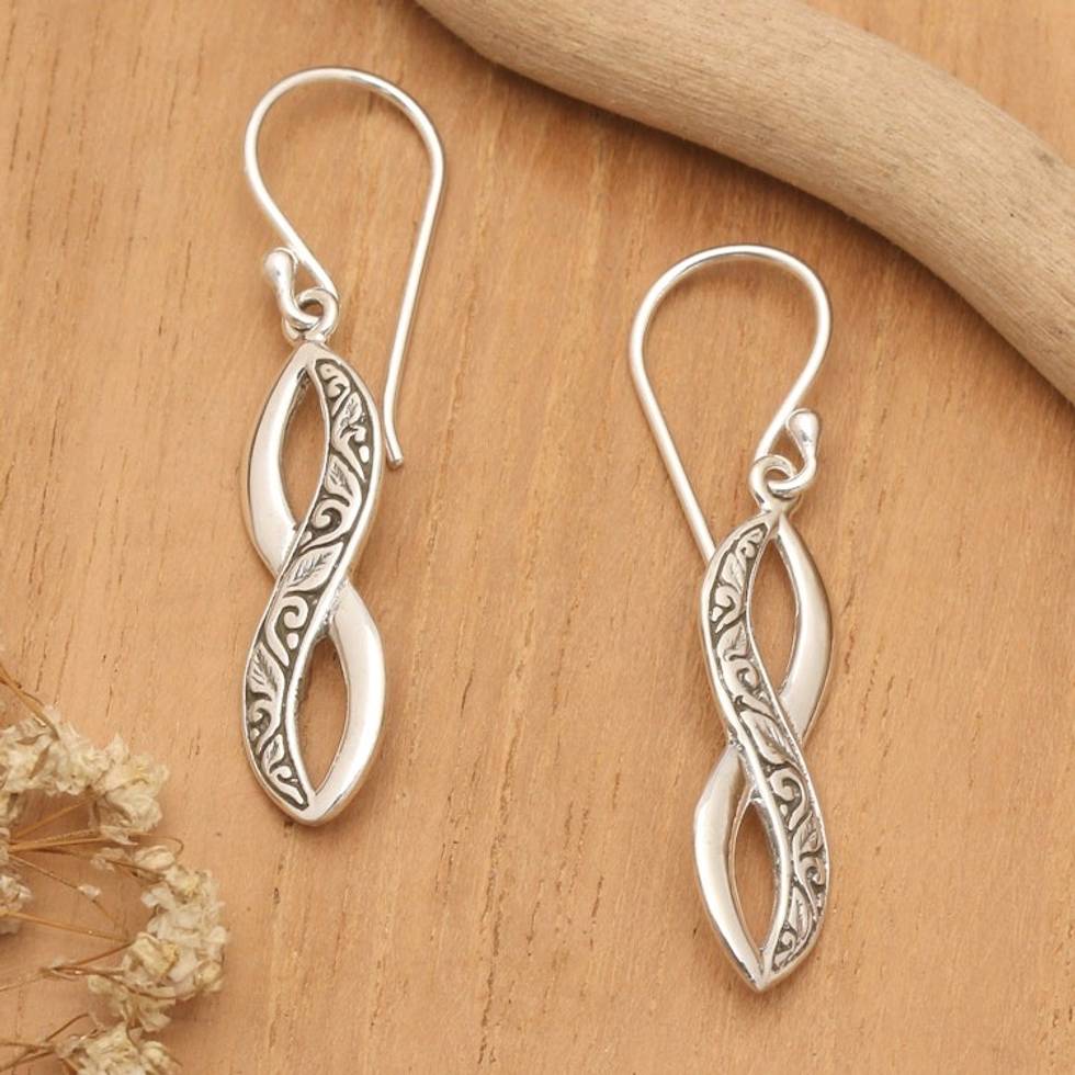 Traditional Balinese Sterling Silver Dangle Earrings 'Beauty of Eternity' Item ID: 2671556145