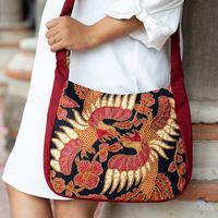 Traditional Beaded Cotton Batik Shoulder Bag in Red 'Intense Sawunggaling' Item ID: 2671762896