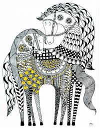 Traditional Black and Yellow Horse Acrylic Painting 'Bond of Love' Item ID: 2671796732