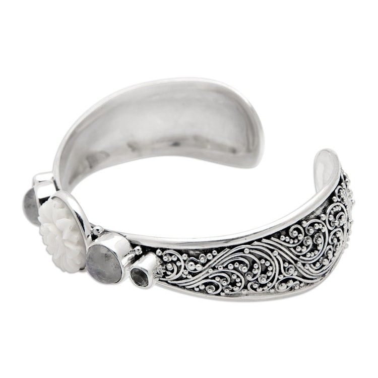 Traditional Blue Topaz and Rainbow Moonstone Cuff Bracelet 'Charming Shades' Item ID: 2671764084