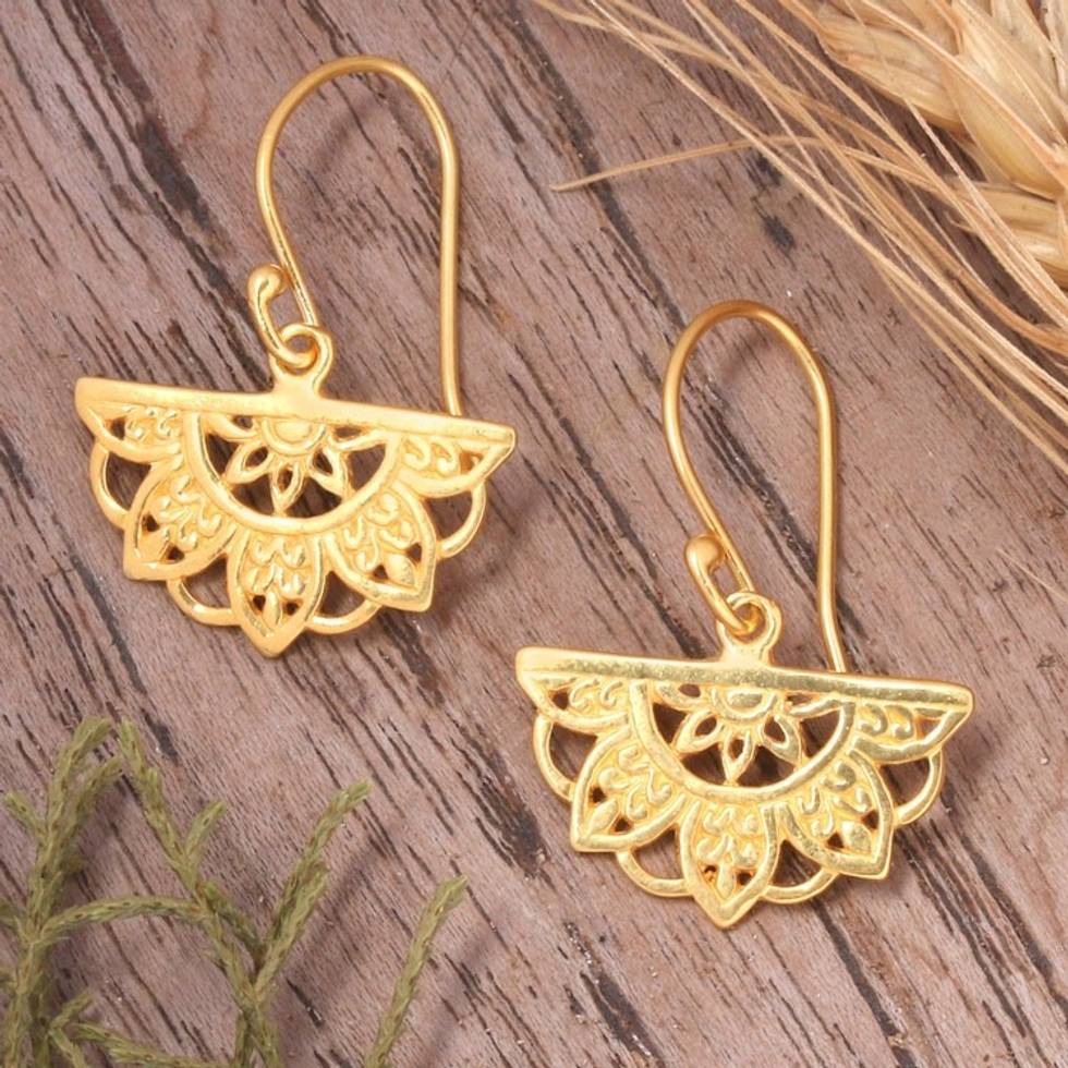 Traditional Chakra-Themed 22k Gold-Plated Dangle Earrings 'Half Chakra' Item ID: 2671764794