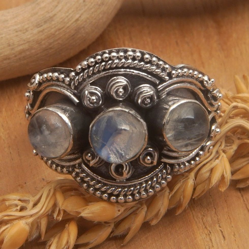 Traditional Cocktail Ring with Natural Rainbow Moonstones 'Palatial Harmony' Item ID: 2671764875