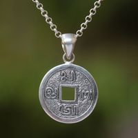 Traditional Coin Sterling Silver Pendant Necklace from Bali 'Bali Aksara' Item ID: 2671820827