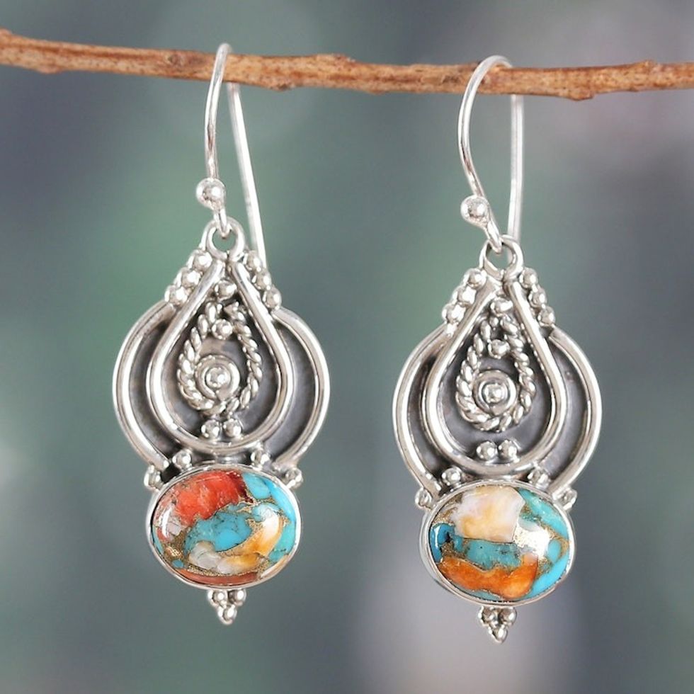 Traditional Composite Turquoise Dangle Earrings from India 'Regal Islands' Item ID: 2671781986