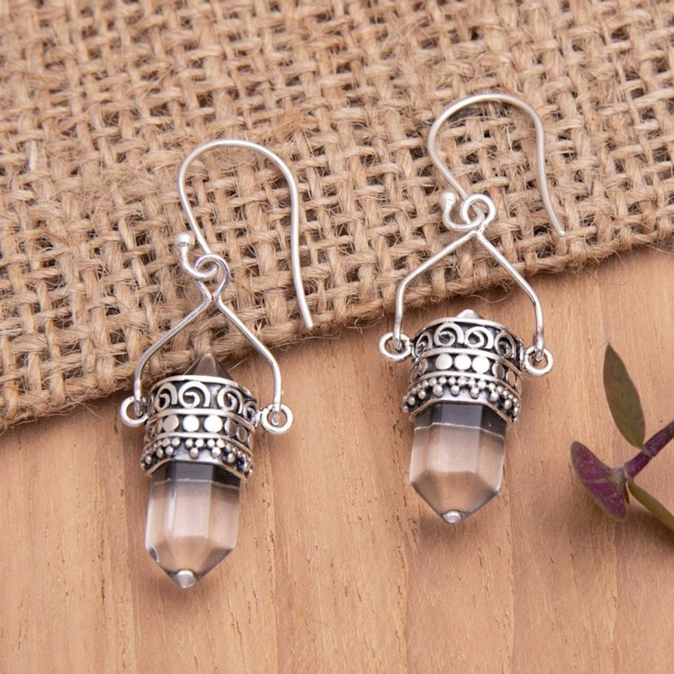Traditional Dangle Earrings with Natural Clear Quartz Gems 'Strive for Justice' Item ID: 2669922971
