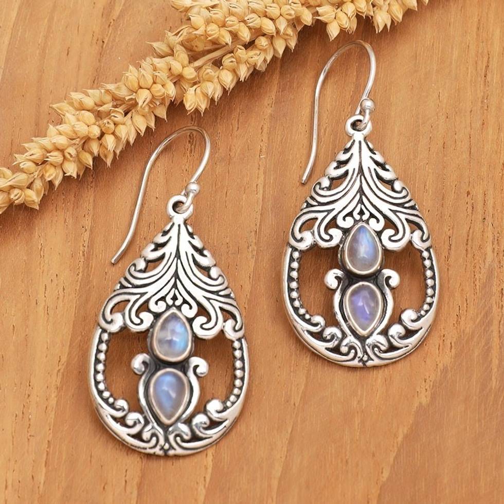 Traditional Dangle Earrings with Natural Rainbow Moonstones 'Harmony of My Life' Item ID: 2671763162
