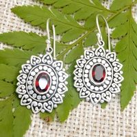 Traditional Floral Dangle Earrings with 1-Carat Garnet Gems 'Spring Commitment' Item ID: 2671763420