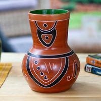 Traditional Folk Art Brown and Green Ceramic Decorative Vase 'Treasure of Majesty' Item ID: 2671807549