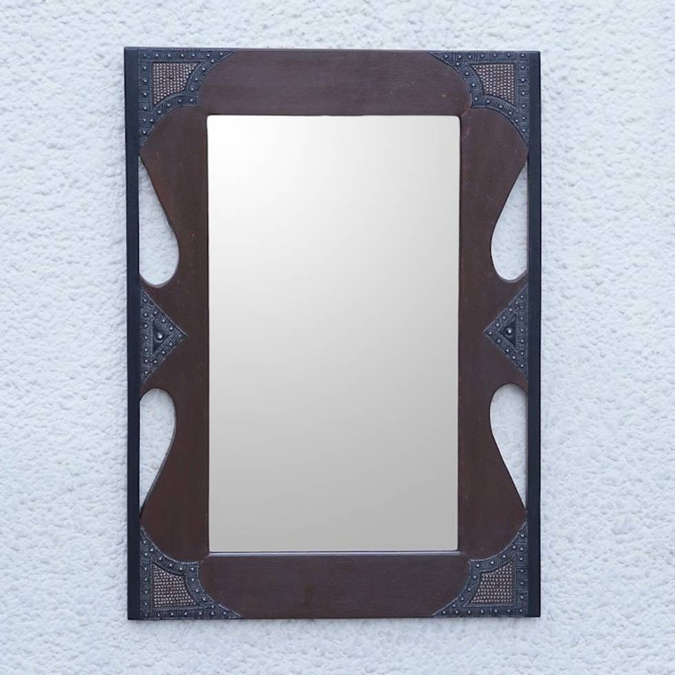 Traditional Ghanaian Handmade Redwood and Aluminum Mirror 'Forever Grateful' Item ID: 2671804936