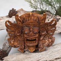 Traditional Hand-Carved Acacia Wood Barong Mask from Bali 'Balinese Fieriness' Item ID: 2671765449