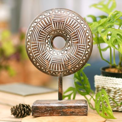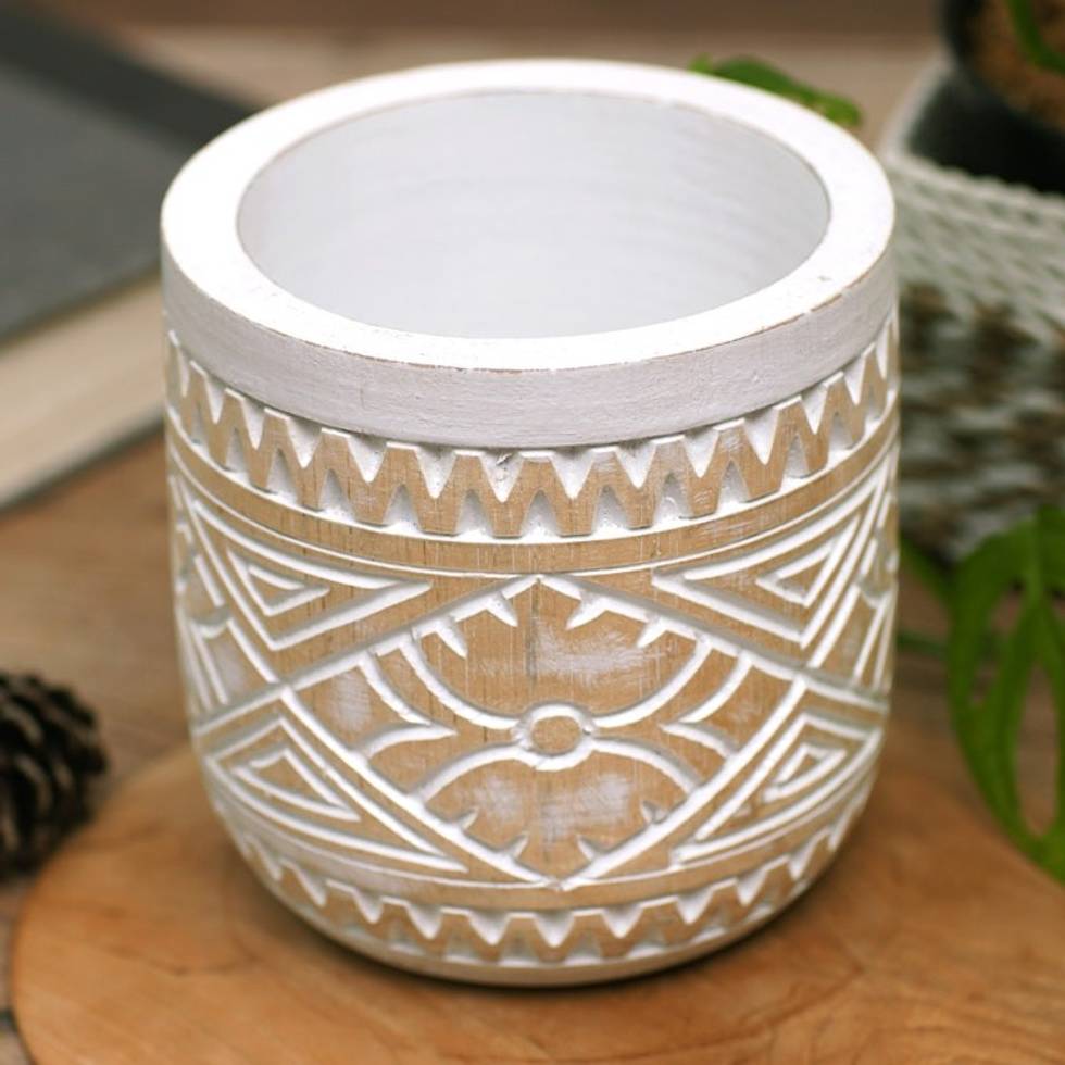 Traditional Hand-Carved Albesia Wood Decorative Vase 'Island Glory' Item ID: 2671763140