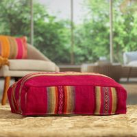 Traditional Handloomed Andean Wool Pouf Cover in Cherry Hues 'Andean Cherry' Item ID: 2671698011