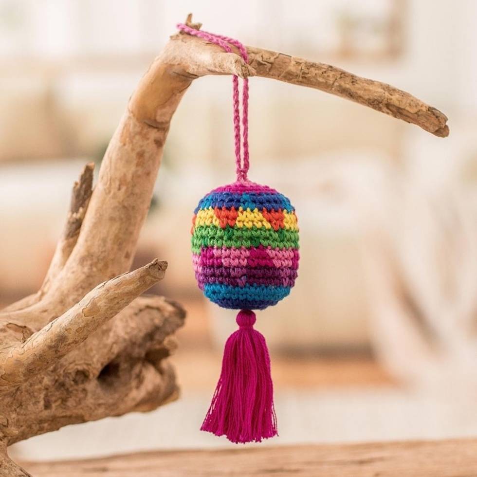 Traditional Knit Cotton Hacky Sack Ornament in Vibrant Hues 'Oneiric Fun' Item ID: 2671771102