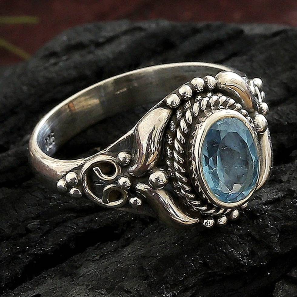 Traditional One-Carat Blue Topaz Cocktail Ring from India 'Traditional Serene' Item ID: 2671781811