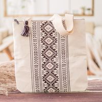 Traditional Patterned Zippered Ivory Cotton Tote Bag 'Celestial Paths' Item ID: 2671626851