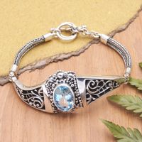 Traditional Pendant Bracelet with Faceted 6-Carat Blue Topaz 'Penglipuran's Treasure' Item ID: 2671821045
