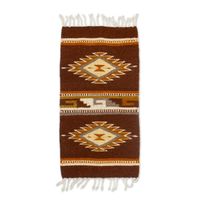 Traditional Redwood and Honey Zapotec 100 Wool Table Mat 'Redwood Gem' Item ID: 2671798799