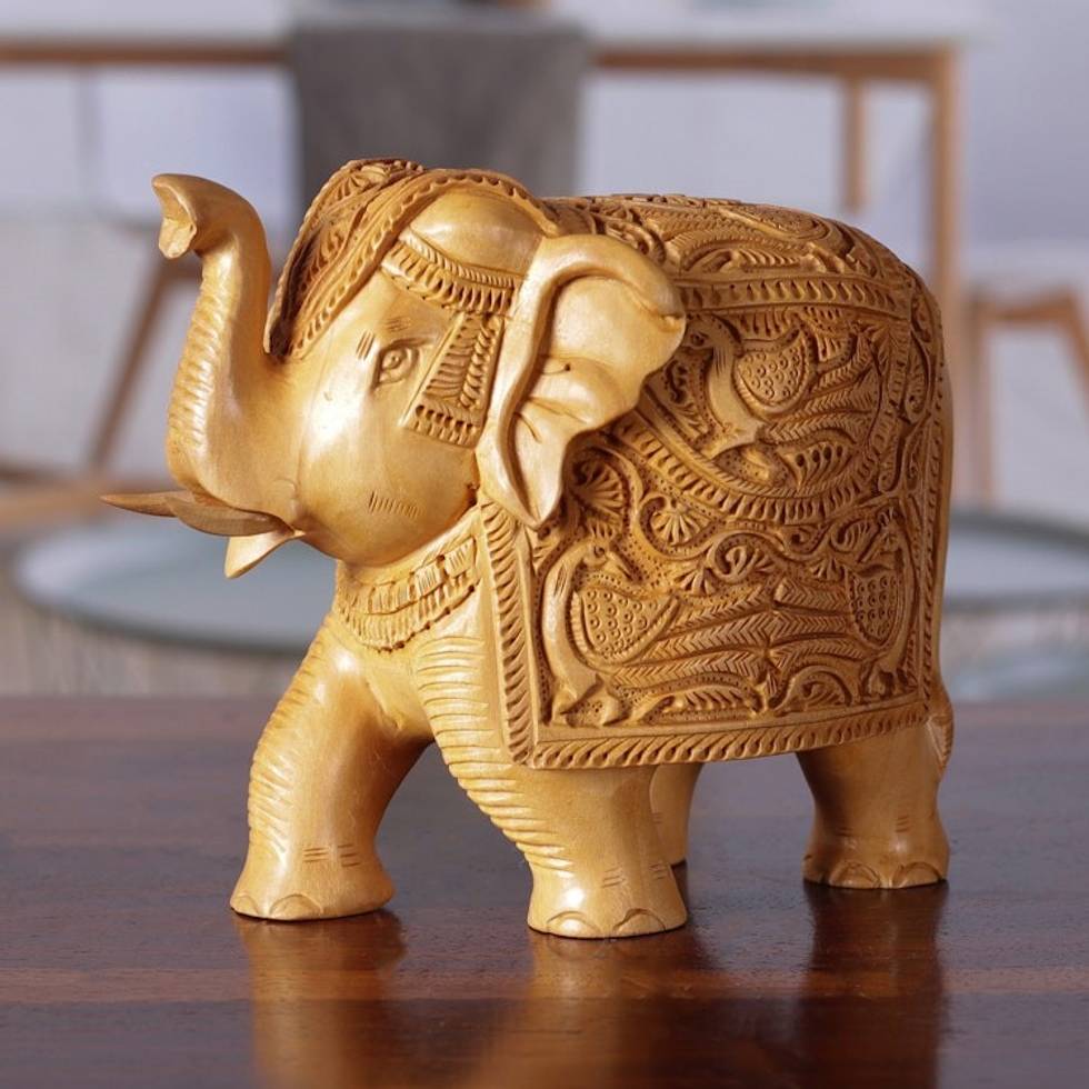 Traditional Regal Kadam Wood Elephant Sculpture from India 'Maharaja's Majesty' Item ID: 2671781142