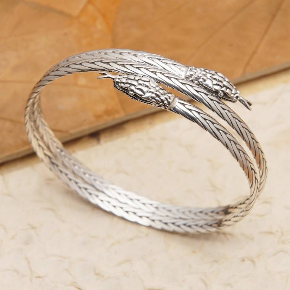 Traditional Snake-Themed Sterling Silver Bangle Bracelet 'Snake Directions' Item ID: 2669920637