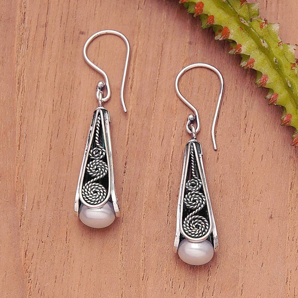 Traditional Sterling Silver and Grey Pearl Dangle Earrings 'Regal Pearls' Item ID: 2671563190