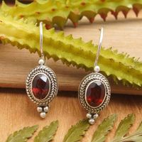 Traditional Sterling Silver Drop Earrings with Garnet Gems 'Virtue of the Passionate' Item ID: 2676660738