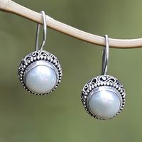 Traditional Sterling Silver Drop Earrings with Grey Pearls 'Marine Grace' Item ID: 2671763238