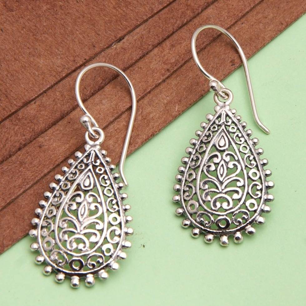 Traditional Sterling Silver Filigree Dangle Earrings 'Gianyar Gala' Item ID: 2671763304