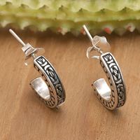 Traditional Sterling Silver Half-Hoop Earrings from Bali 'Woven Fate' Item ID: 2671765816