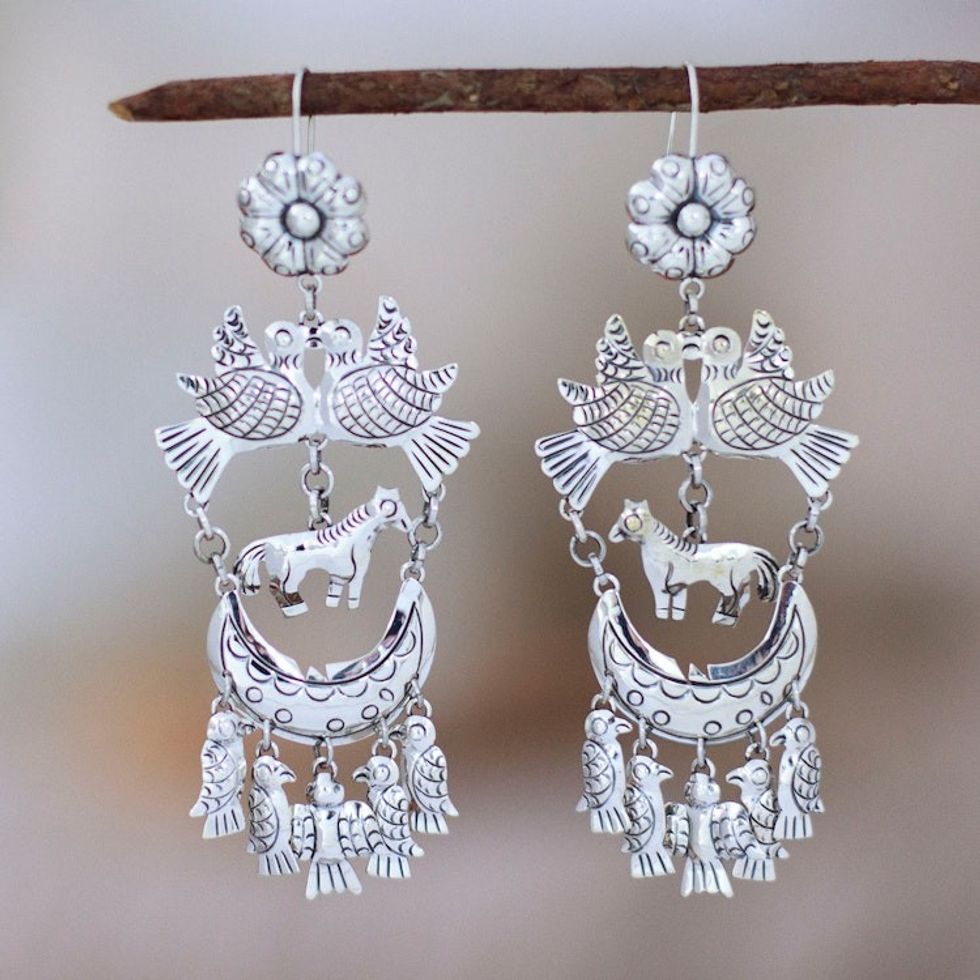 Traditional Taxco Sterling Silver Chandelier Earrings 'My Paradise' Item ID: 2671639027