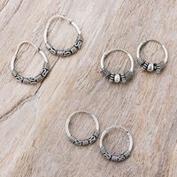 Traditional Thai Sterling Silver Hoop Earrings Set of 3 'Traditional Thailand' Item ID: 2669925999