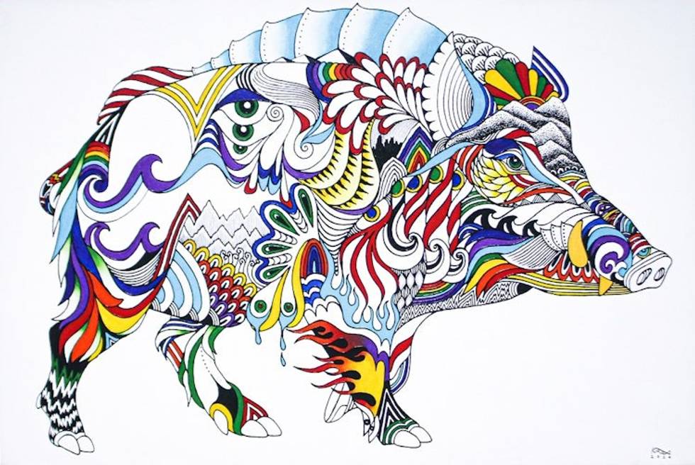 Traditional Thai Year of the Pig Acrylic on Canvas Painting 'Wild Boar' Item ID: 2671796644