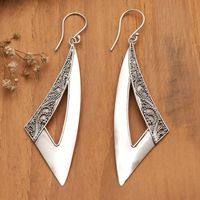 Traditional Triangular Sterling Silver Dangle Earrings 'Sail to Badung' Item ID: 2669920567