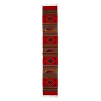 Traditional Zapotec Wool Table Runner in Red and Sunrise 'Fiery Jewel' Item ID: 2671798603