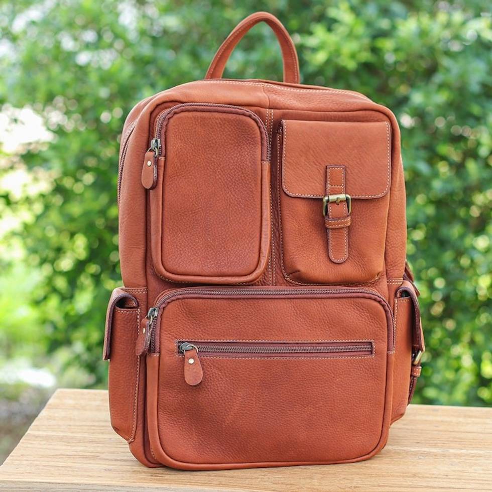 Travel-Friendly 100 Brown Leather Backpack from Thailand 'Intrepid Companion' Item ID: 2671646597