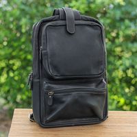 Travel-Friendly Black Leather Cross-Body Backpack 'Journey at Night' Item ID: 2671798238