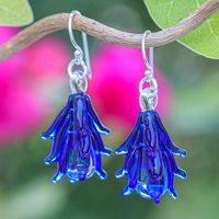 Tree-Inspired Handblown Glass Dangle Earrings in Royal Blue 'Royal Blue Tree' Item ID: 2671646711