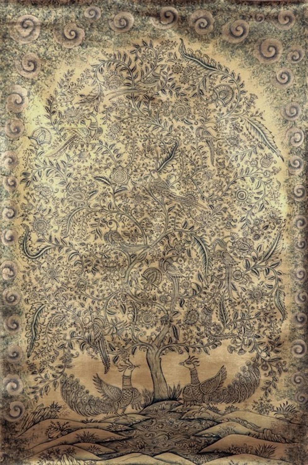 Tree of Life Kalamkari Painting 'Dancing Clouds and Golden' Item ID: 2671691743
