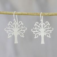 Tree-Shaped Sterling Silver Dangle Earrings from Thailand 'Life Is Natural' Item ID: 2671800686