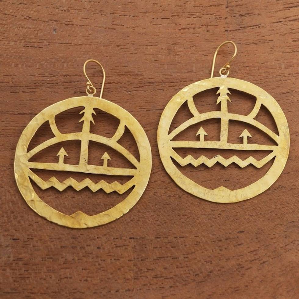 Tree-Themed Modern Brass Dangle Earrings from Bali 'Earth Cycle' Item ID: 2671737627