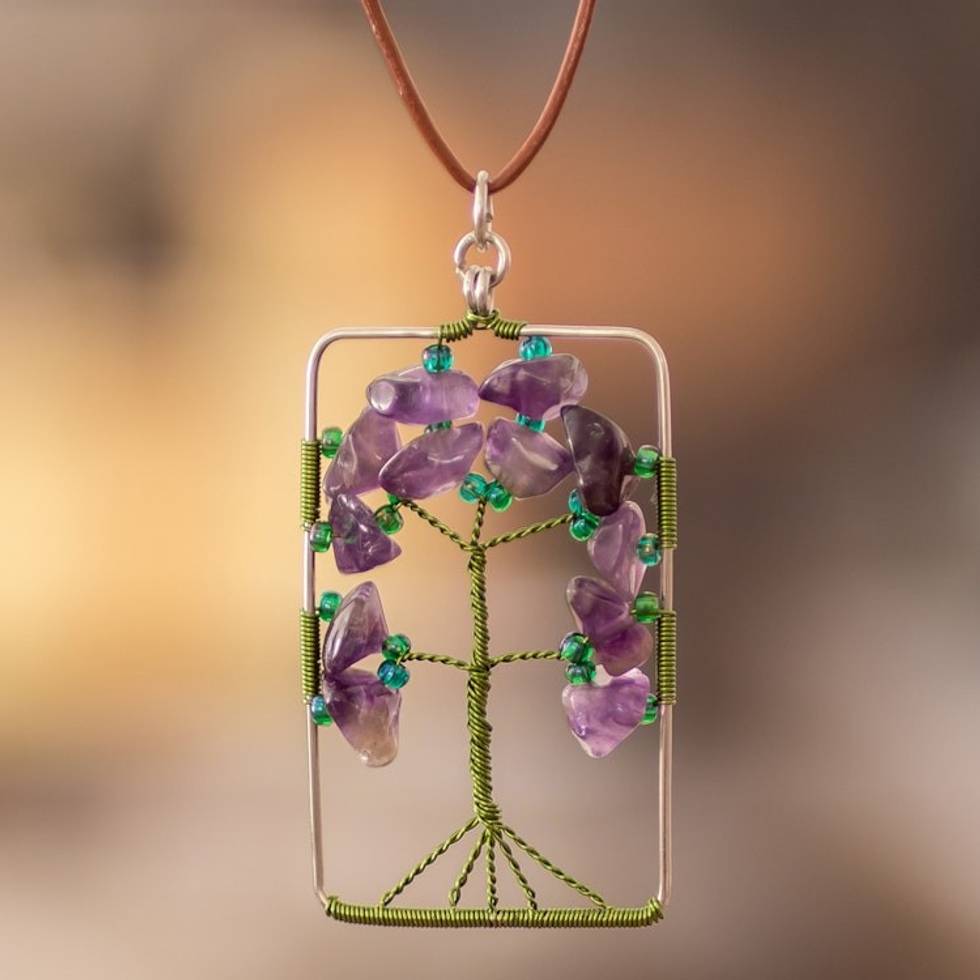 Tree-Themed Purple and Green Amethyst Pendant Necklace 'Sylvan Purple' Item ID: 2671771494