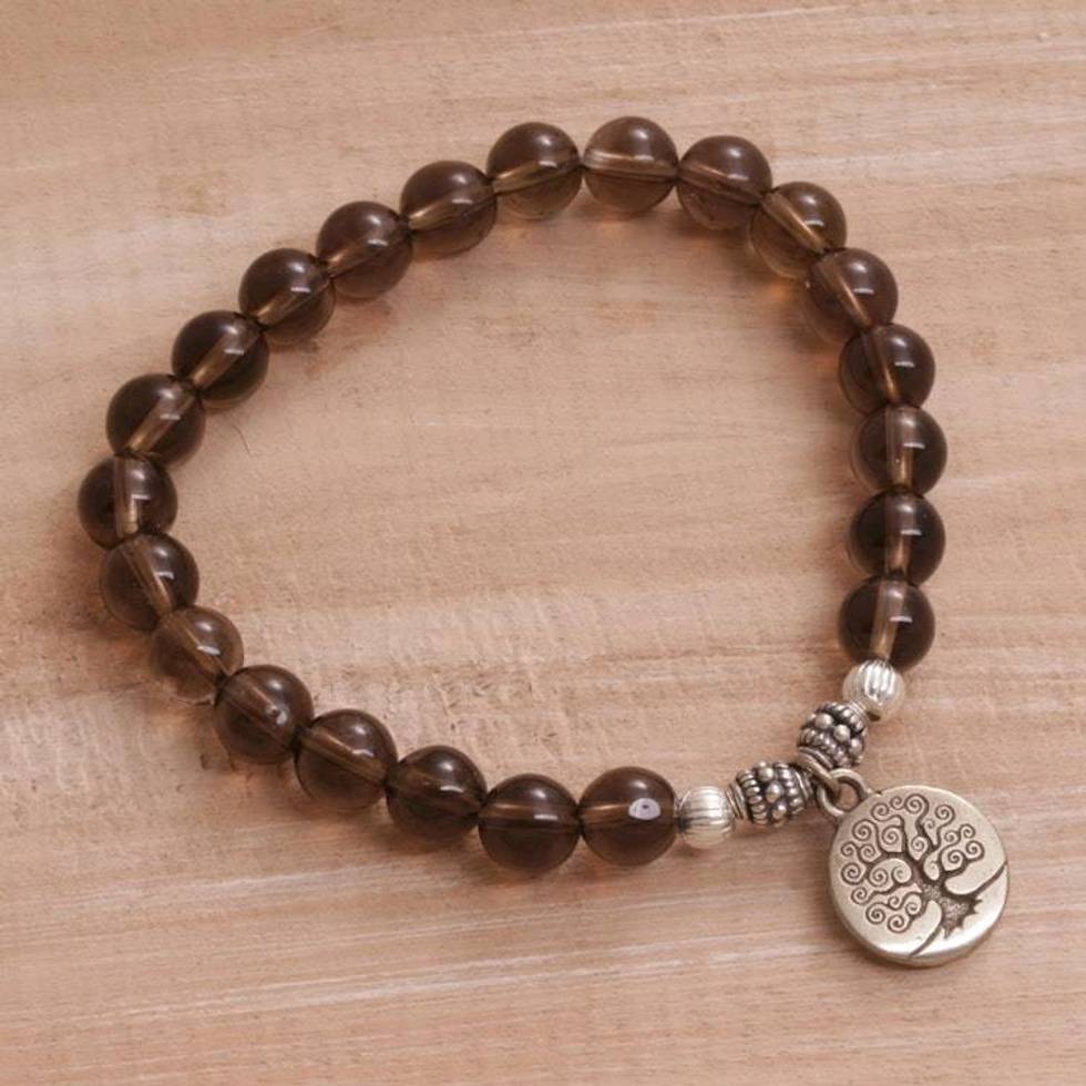 Tree-Themed Smoky Quartz Beaded Stretch Bracelet 'Sunrise Tree' Item ID: 2676657689