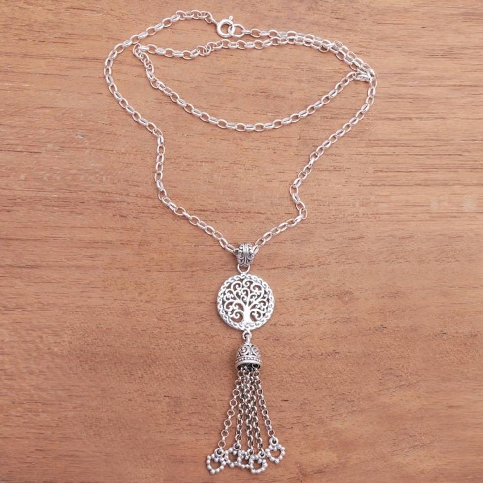 Tree-Themed Sterling Silver Pendant Necklace from Bali 'Tree Bell' Item ID: 2671744772