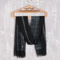 Tri-Tone Dark Wool Shawl Woven in India 'Midnight Delight' Item ID: 2669892335